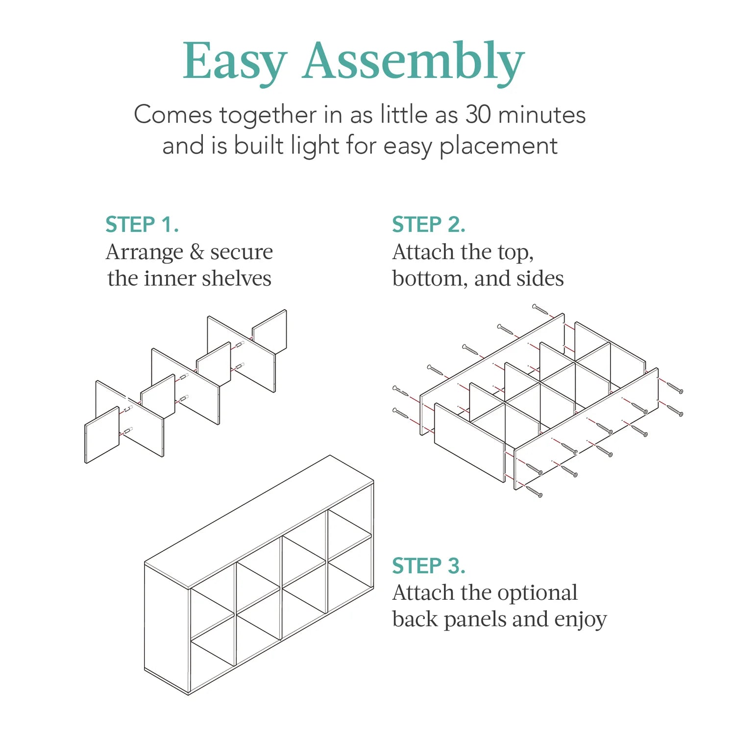 8-Cube Bookshelf, 11in Storage Display w/ Removable Panels, Customizable (White)