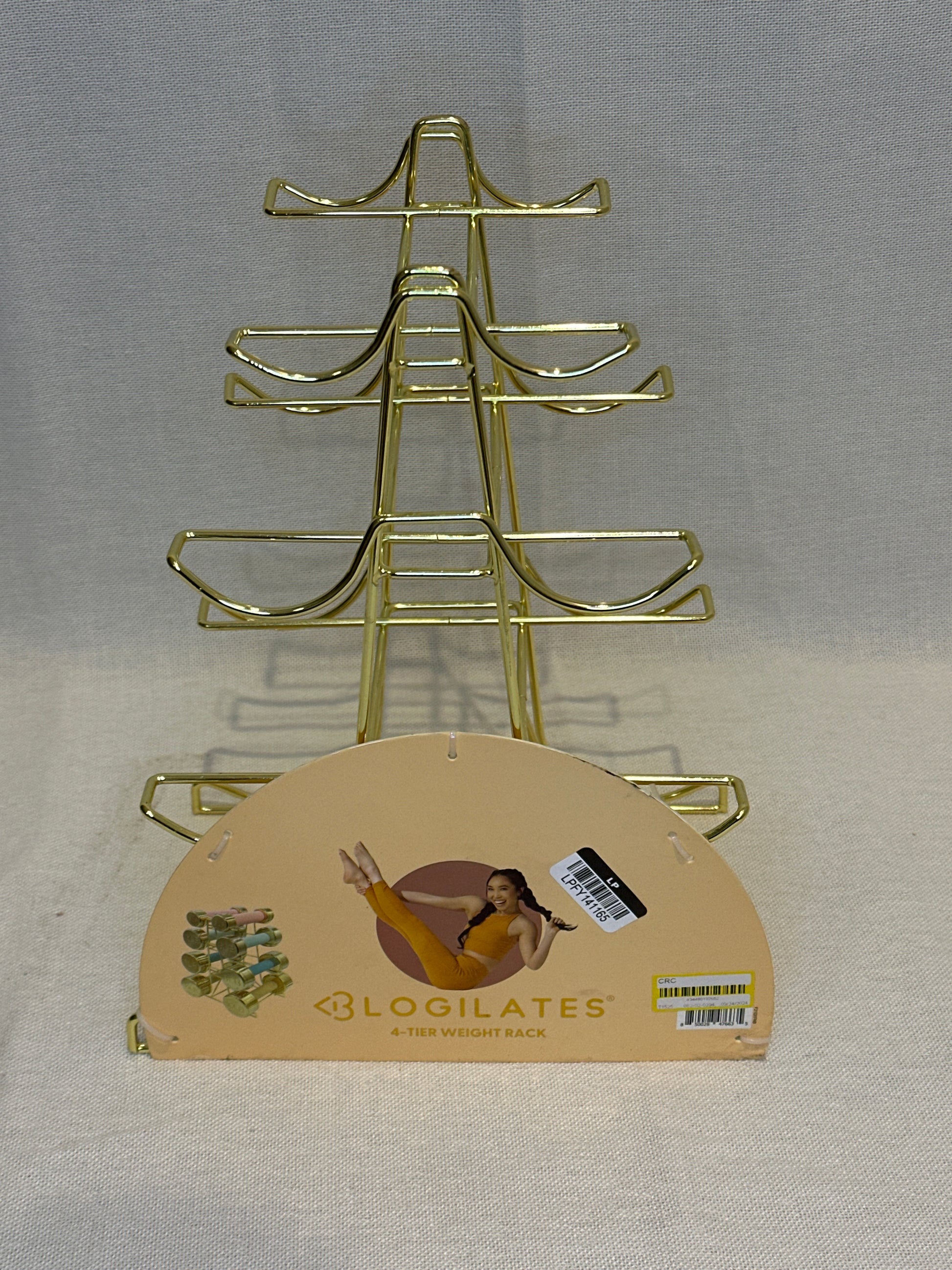 Keep your fitness space tidy and ready for a focused workout with this 4-Tier Gold-tone Weight Rack from Blogilates. Durable and sturdy, this convenient metal rack holds up to four sets of weights including 10lb, 8lb, 5lb, and 3lb. Featuring a charming gold-tone finish, the rack pairs perfectly with Blogilates gold-tone hand weights (sold separately) to create a cohesive look within your at-home exercise environment. Developed by leading fitness personality, Pilates instructor, and designer, Cassey Ho, the Blogilates 4 -Tier Gold-tone Weight Rack helps keep your space organized and stylish so you can continue to find the joy in fitness.