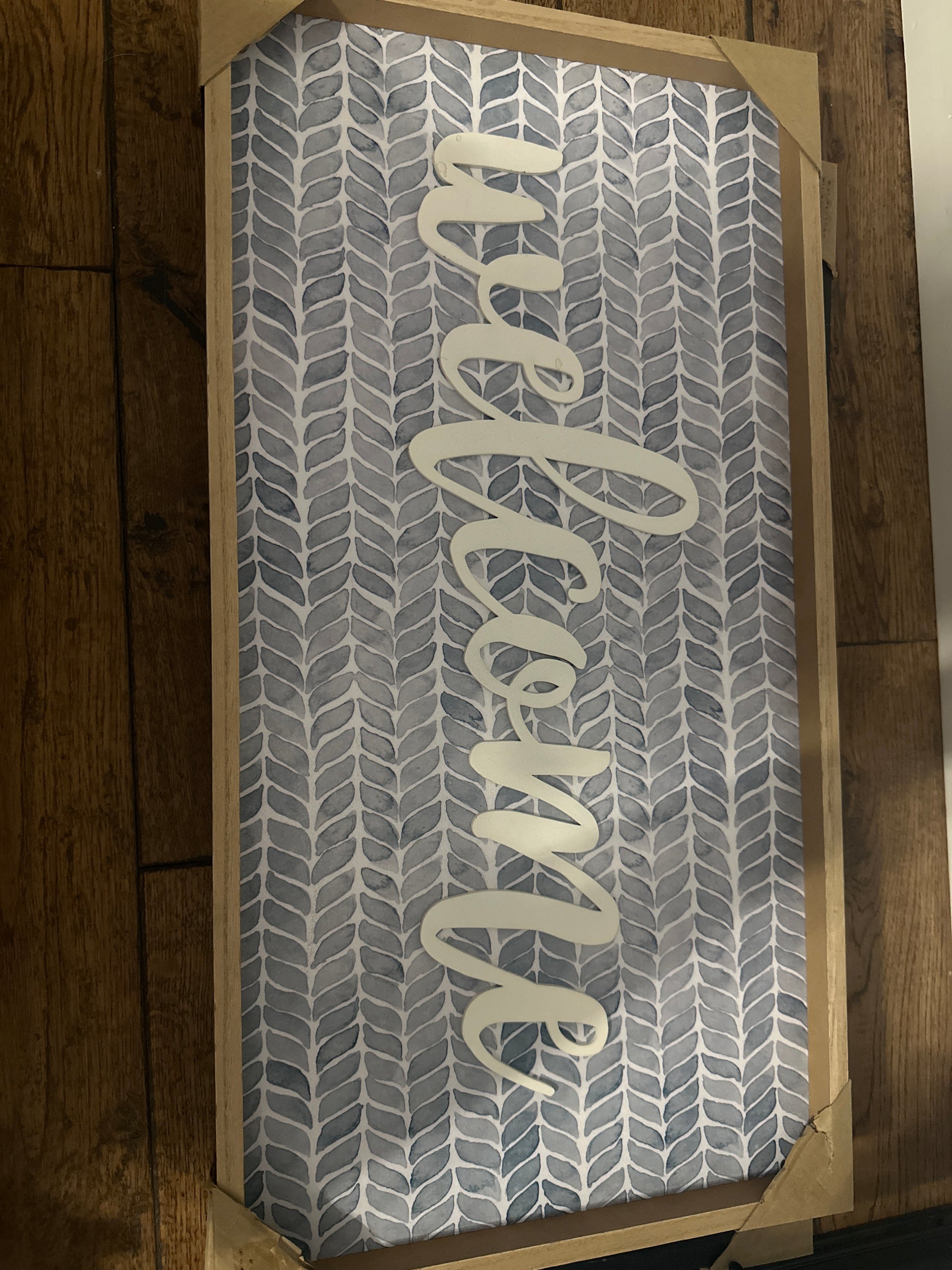 Blue welcome sign