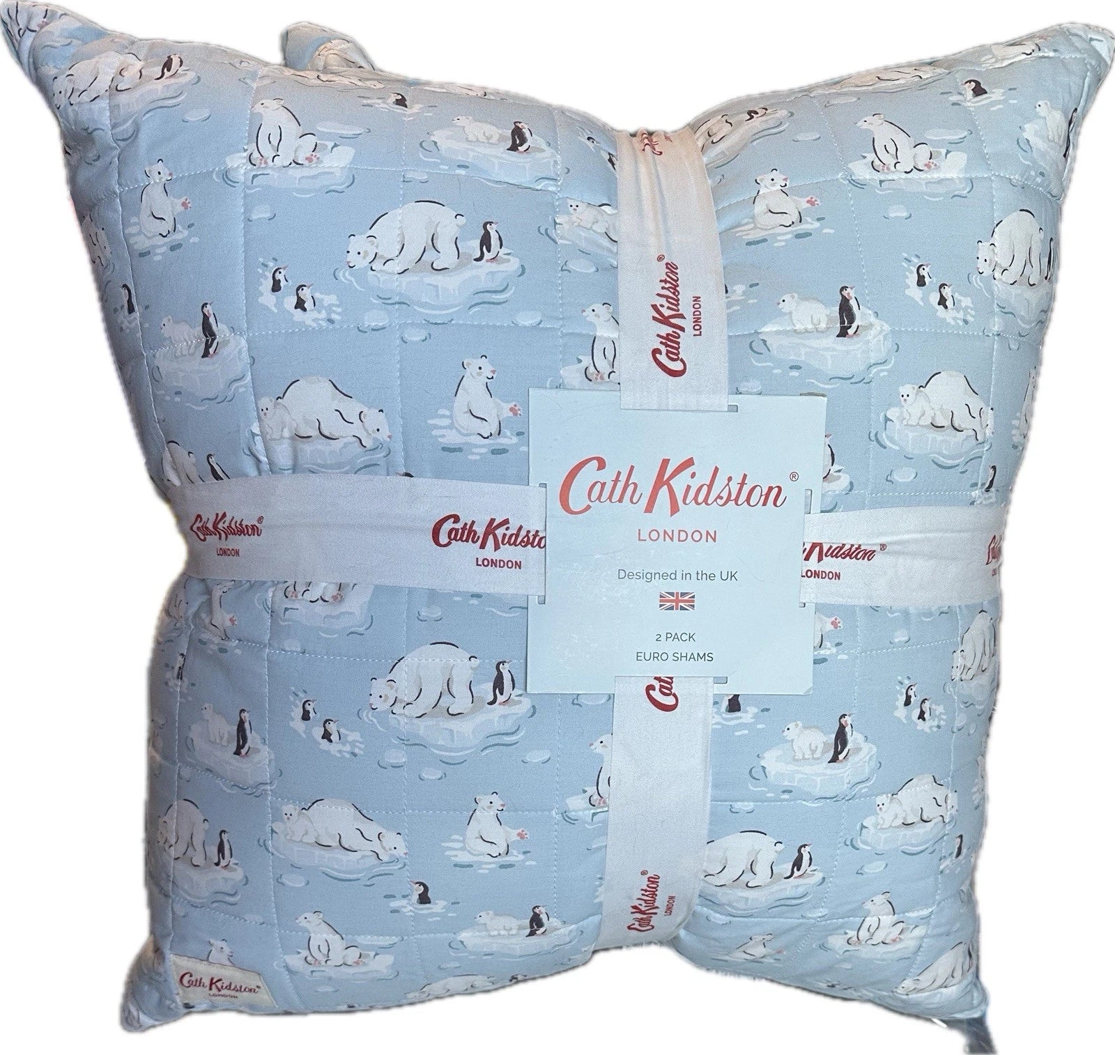 Cath Kidston Polar Ice Blue 2 Holiday Pillows Euro Shams Polar Bear and Penguins