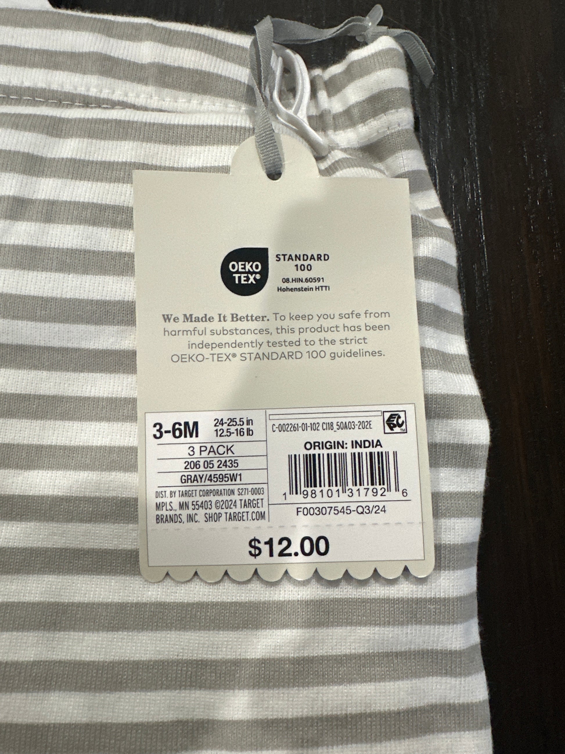 ⢠3 à Baby Pants (assorted gray & stripe designs)