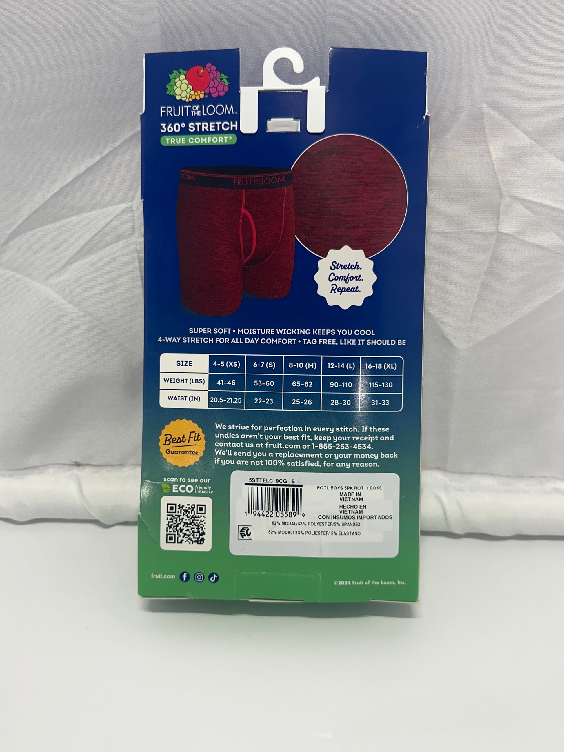 • 5 × Fruit of the Loom Boys 360° Stretch True Comfort Boxer Briefs