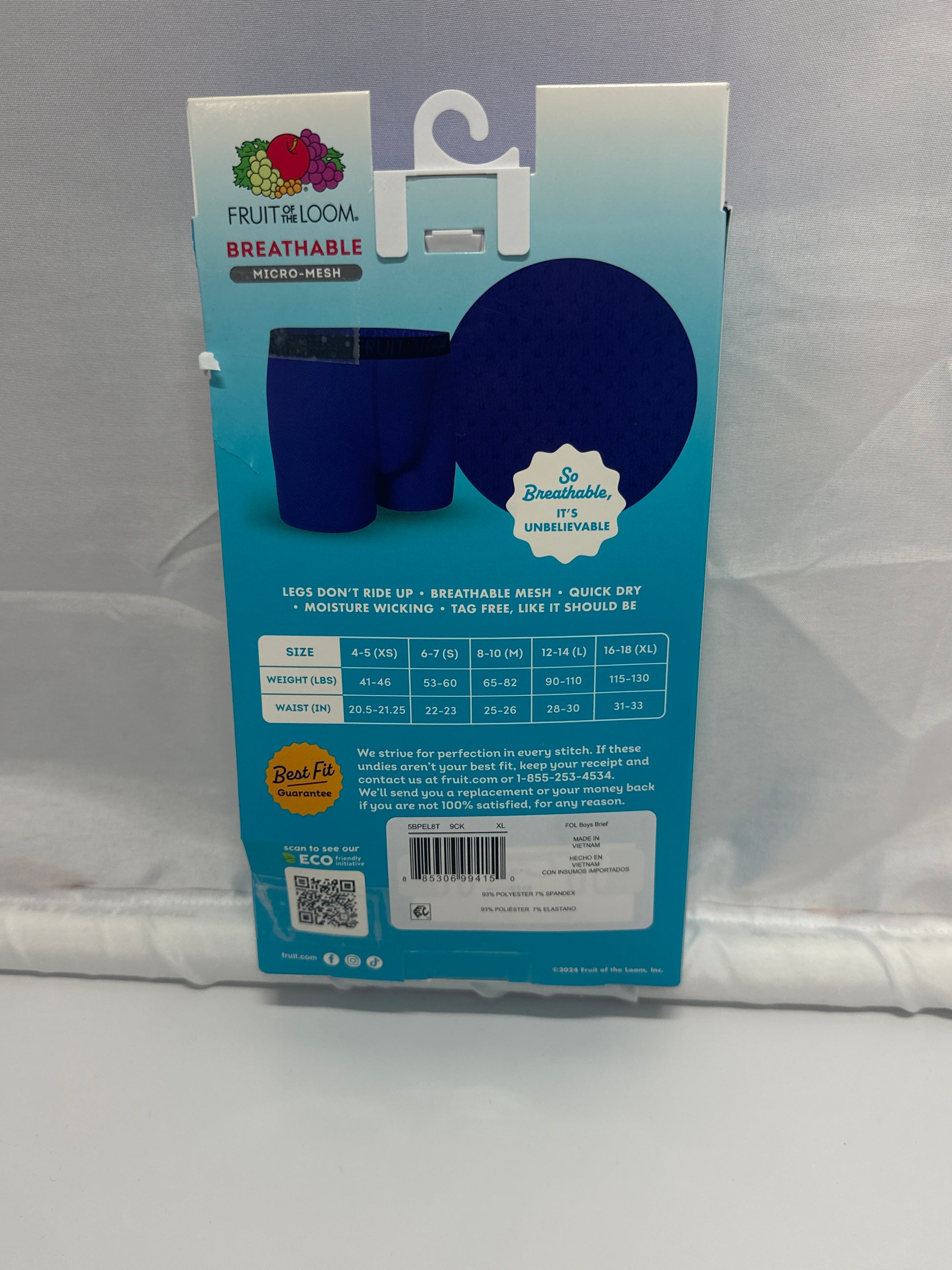 Designed to keep kids cool and comfortable, these Fruit of the Loom boxer briefs feature breathable micro-mesh fabric that promotes airflow and quick drying. With moisture-wicking performance and a stay-put fit, they’re built for active days and everyday wear.