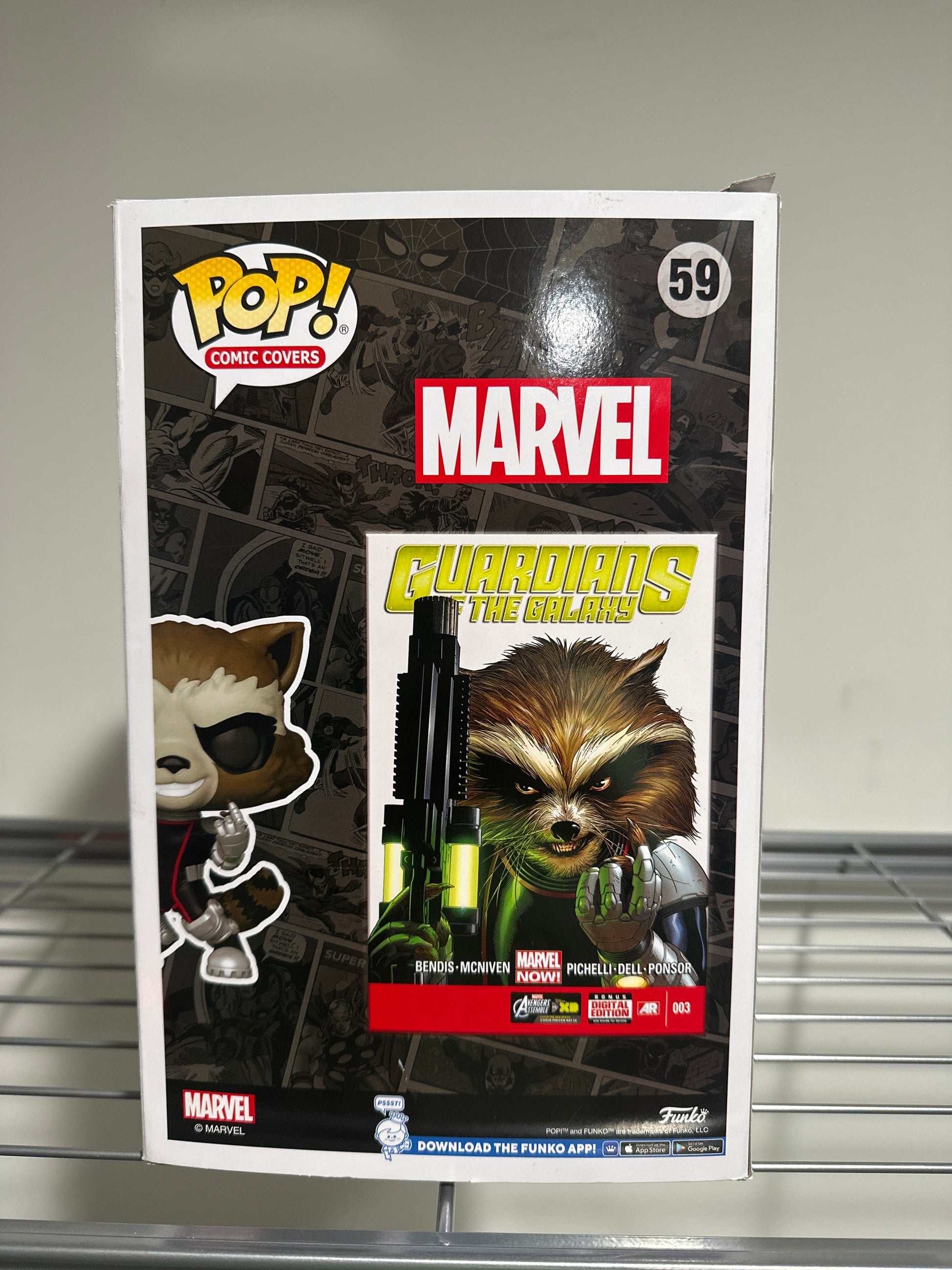 - Funko POP! figure with matching Rocket Raccoon comic cover art