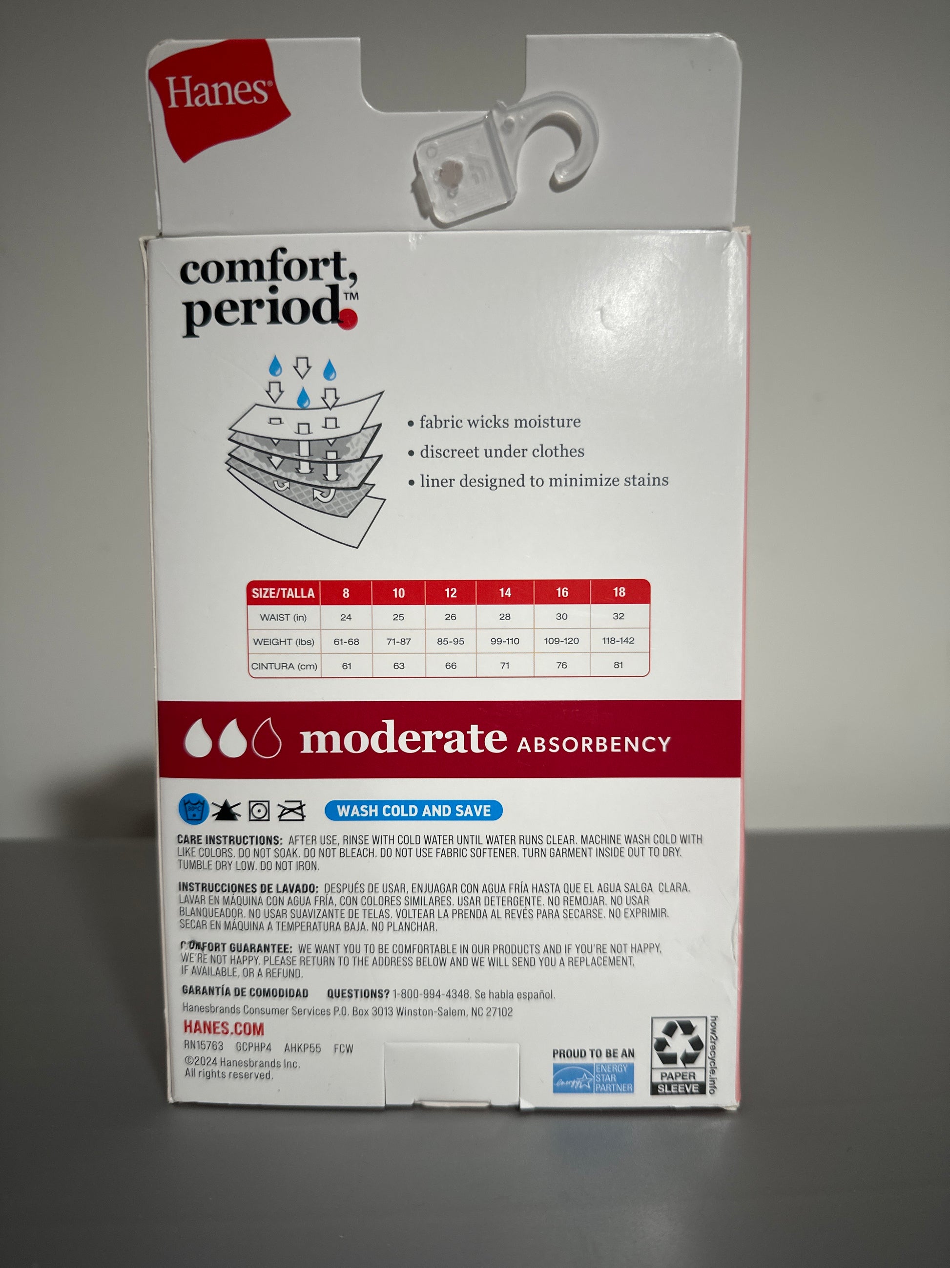 Hanes Girls 4pk Hipster Period Underwear Moderate Protection Size 8