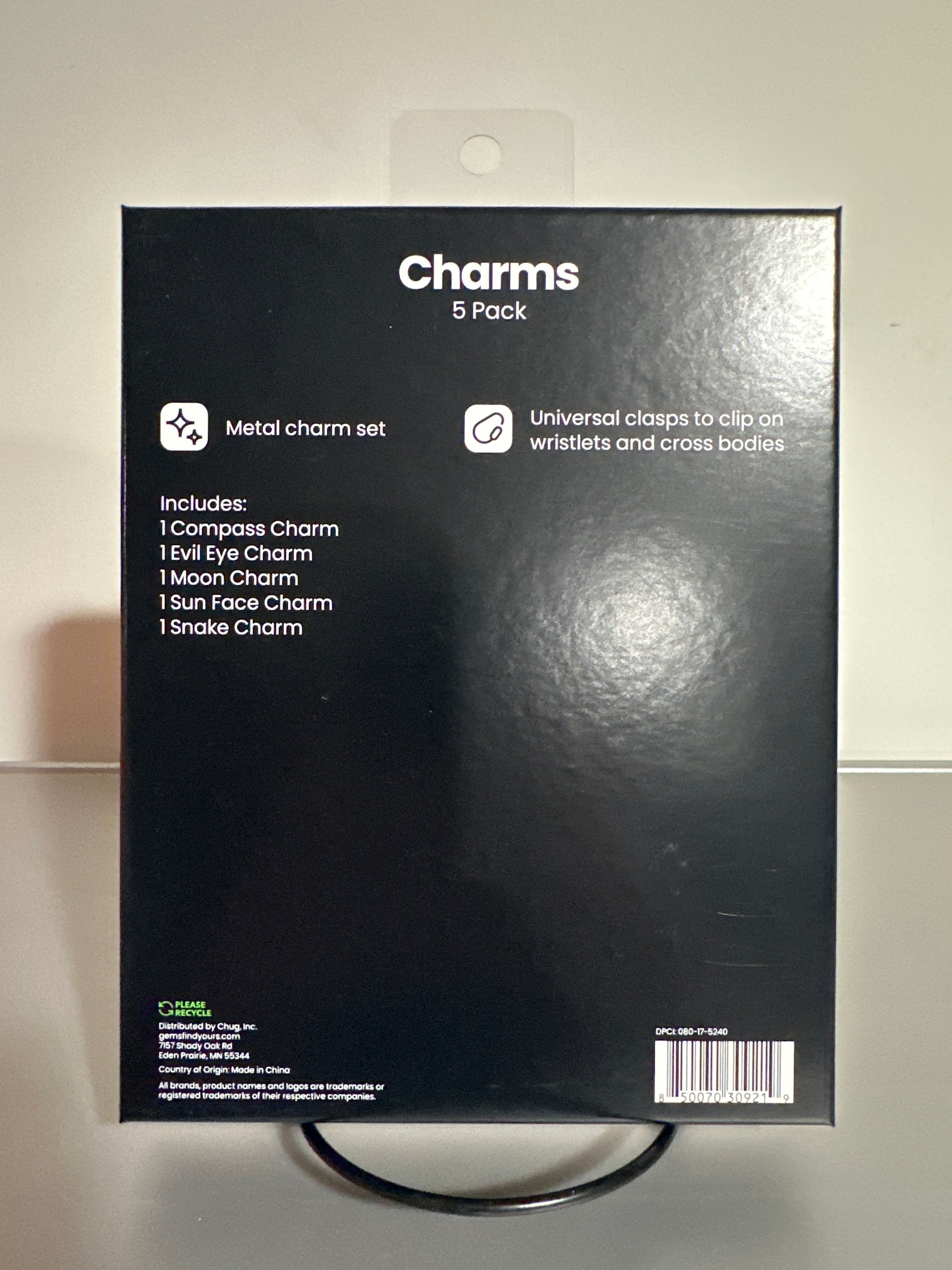 Add a mystical, celestial touch to your accessories with this Hello Lux 5-Pack “Astrology” charm set. Featuring astrology-inspired metal charms with universal clasps, these stylish accents easily clip onto phone wristlets, crossbodies, purses, or keychains for a unique statement look.