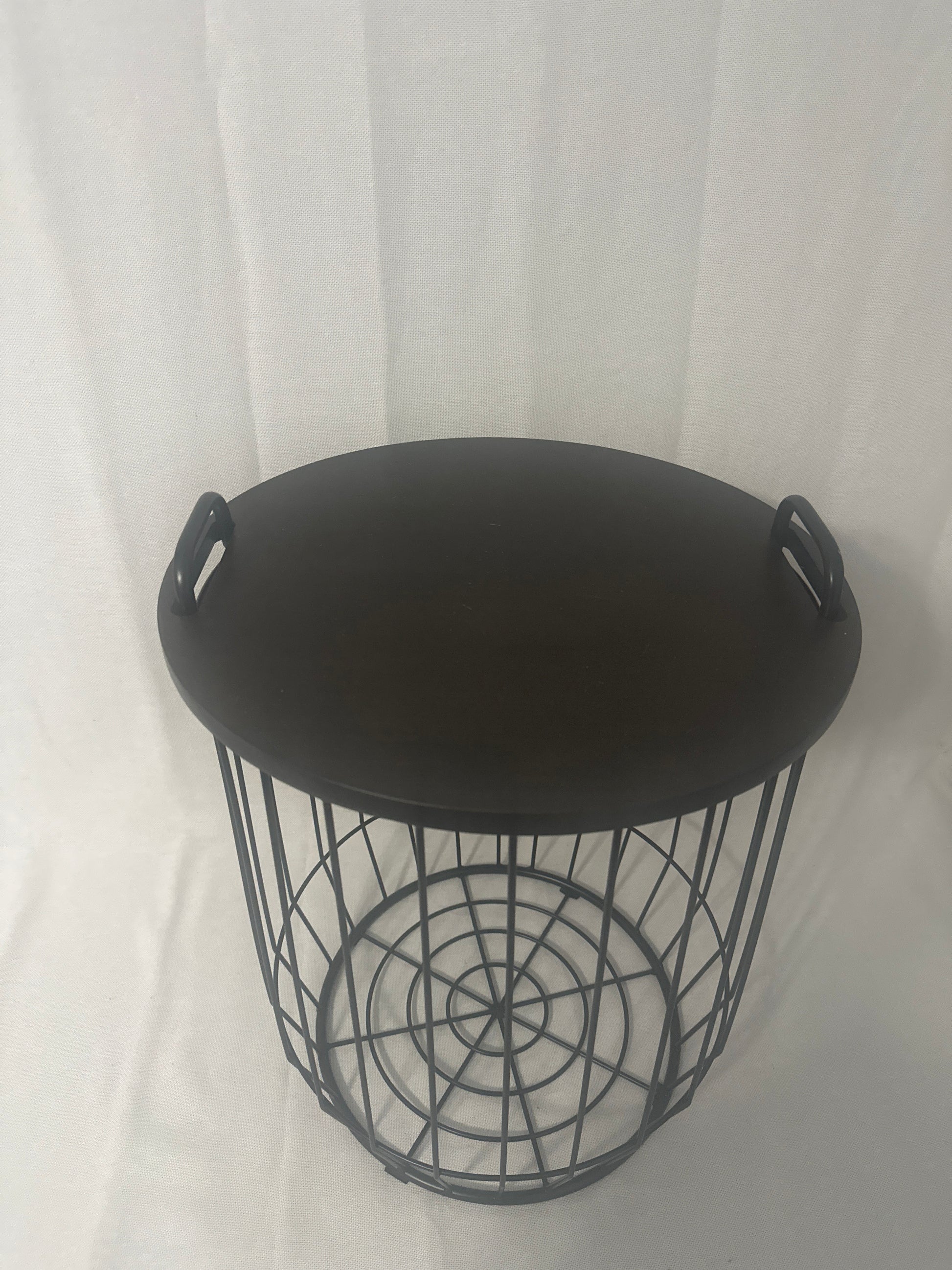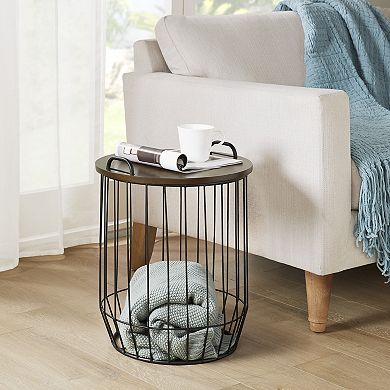 The Madison Park Hayden Side Table offers ample storage solutions within the basket, while also acting as a side table for dual functionality.