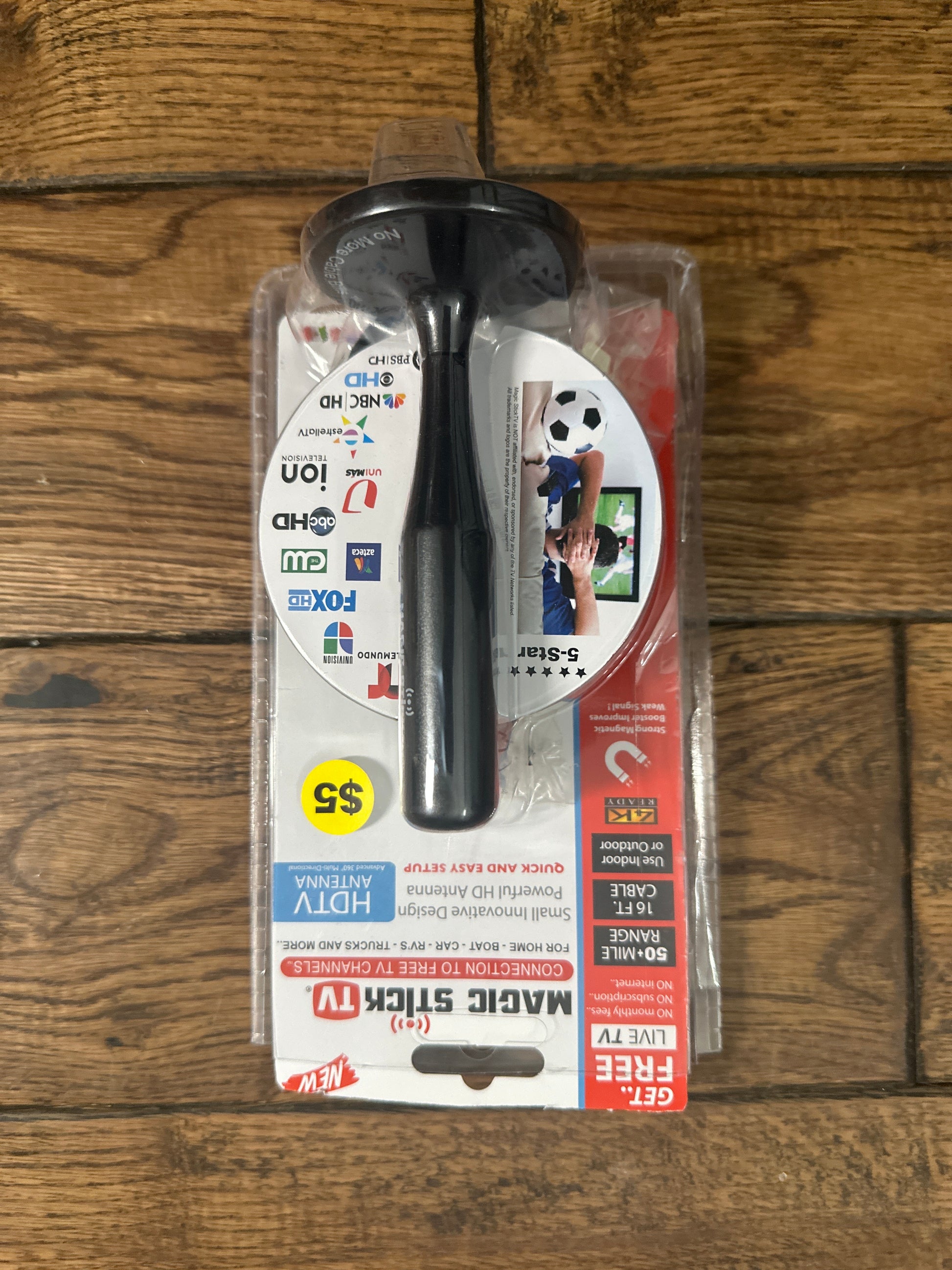 Compatible with all HDTVs and Older TV's made after 2007! Indoor and Outdoor HDTV Antenna Magic Stick TV delivers FREE local HDTV broadcasts in 1080p resolutions. Every order includes a 16.5-foot high performance coaxial cable that reduces the loss of signal strength and enables stable signal reception. 50+ Mile Range Capability The antenna can get a clear HD signal up to 50+ miles away, in every direction. Please note: Actual range may vary based on your location and TV broadcast source. A New 2018 Upgraded Model Enjoy movies and TV shows with no cost. Receive up to 100 HD channels and enjoy 1080p HD Quality straight to your Digital TV! Plus a long heavy duty 16.5-foot coaxial cable with gold shielded connectors. Multidirectional Discrete Design - USA Patented Designed so you do not have to move the antenna when switching channels. The antenna is discrete and easily hides behind window coverings. Out of sight, out of mind! NOTE: This antenna does NOT require amplifiers Most amplified antennas, if you live close to the broadcast, can cause signal overload and actually prevent you from getting a picture. Magic Stick TV has a built in matching transformer for UHF VHF frequencies. This allows for better channel reception and clear HD frequencies. Technical Information: Model Number: MS-50 Color: Black, White Weight: 9.5 oz Range: 50+ miles plus Amp Gain: 20dB Connector: Gold Coaxial Cable Wire length: 16.5 ft. Frequency: 470-862 MHZ Patent Pending: USA Designed