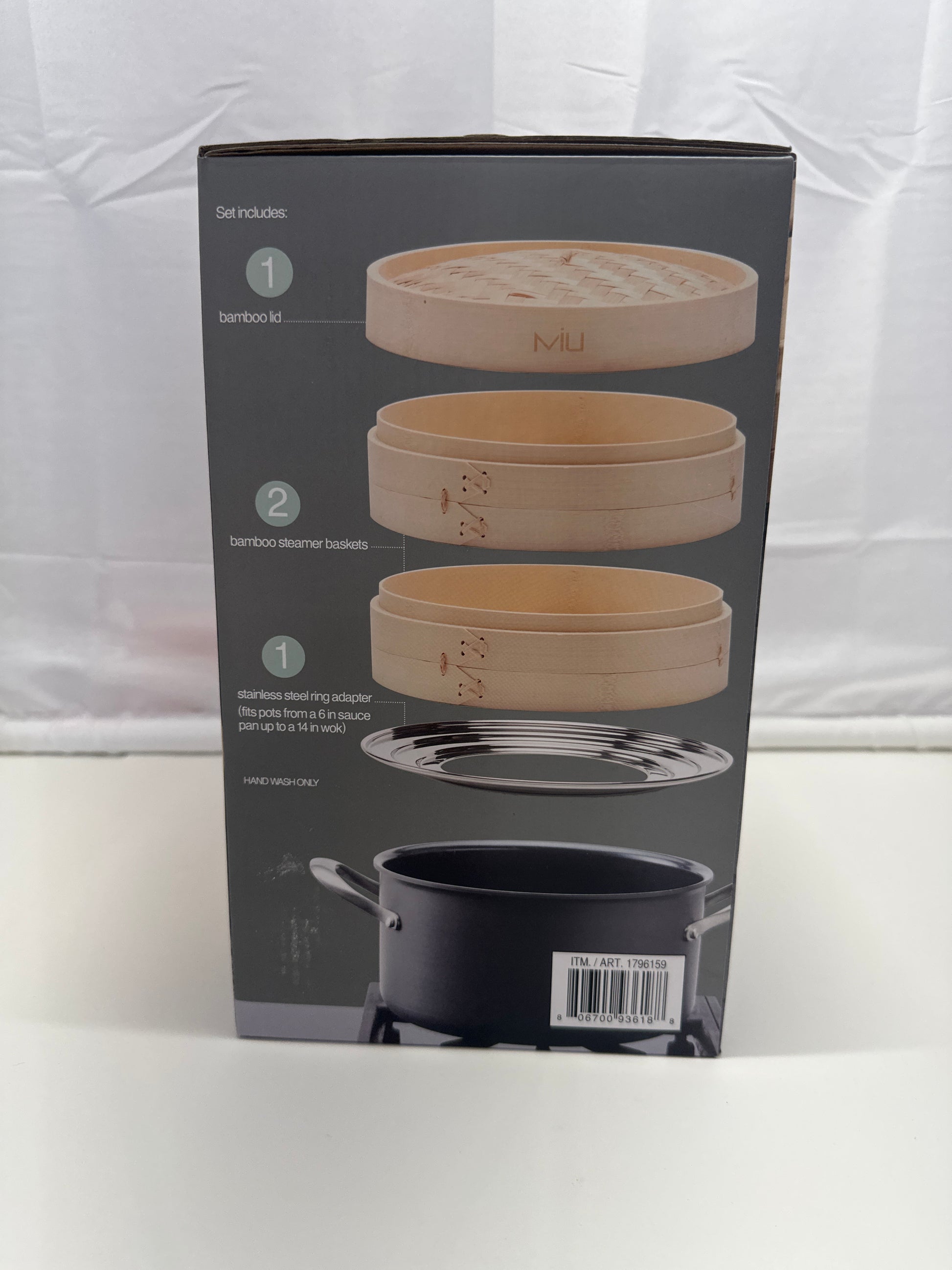 Bring authentic, healthy cooking to your kitchen with this MIU bamboo steamer basket set. Designed for gentle steaming, it locks in flavor and nutrients while making it easy to prepare dumplings, vegetables, seafood, and more right on your stovetop.