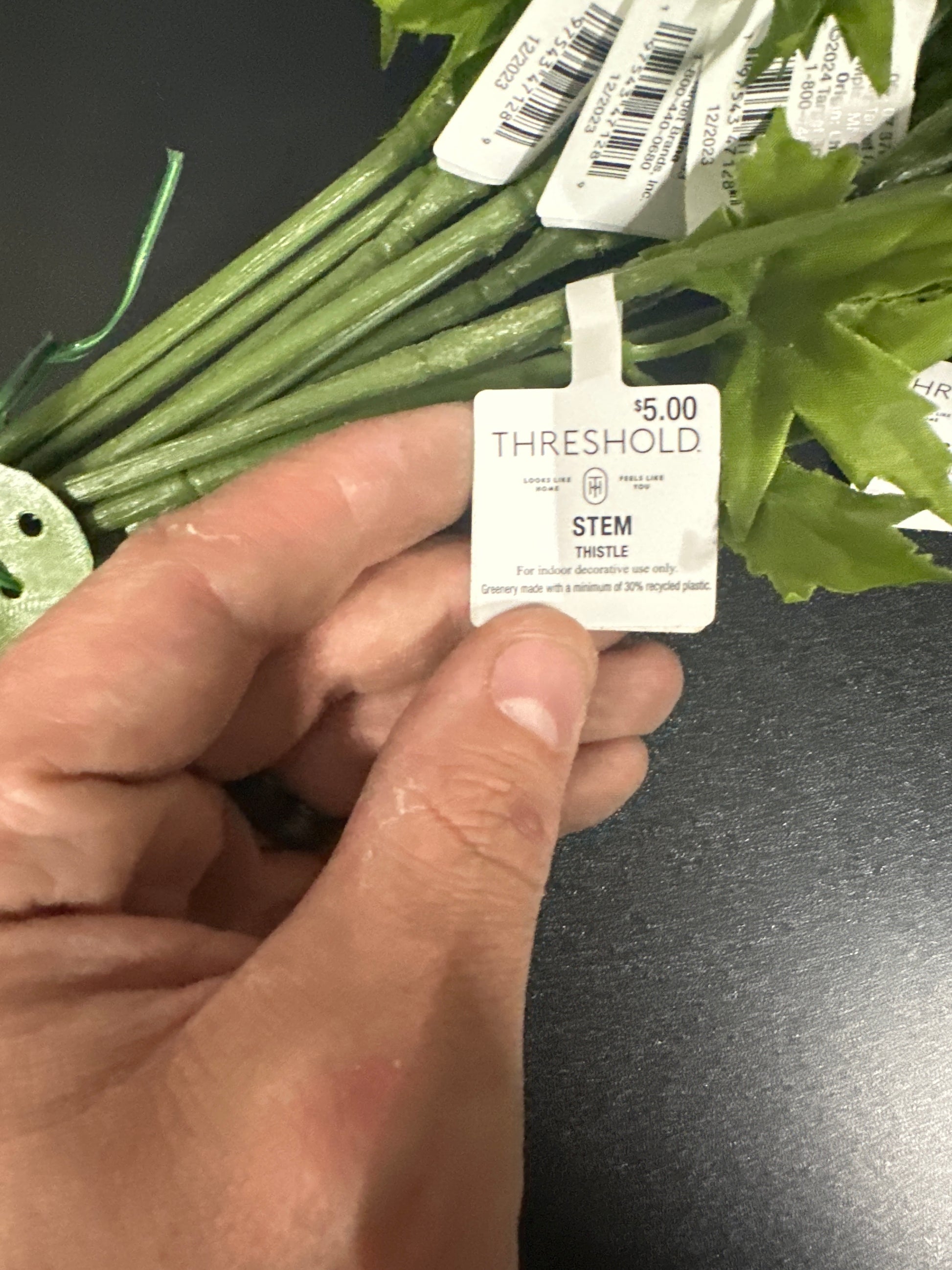 Add a touch of elegance to any occasion with this beautiful thistle stem arrangement from Threshold. The stems are 26 inches in length and are perfect for adding a pop of color to your home decor. Made in China, this arrangement is ideal for all occasions and will surely impress your guests. Whether you're looking to spruce up your living room or add a touch of sophistication to your dining table, this thistle stem arrangement is the perfect addition to your home.