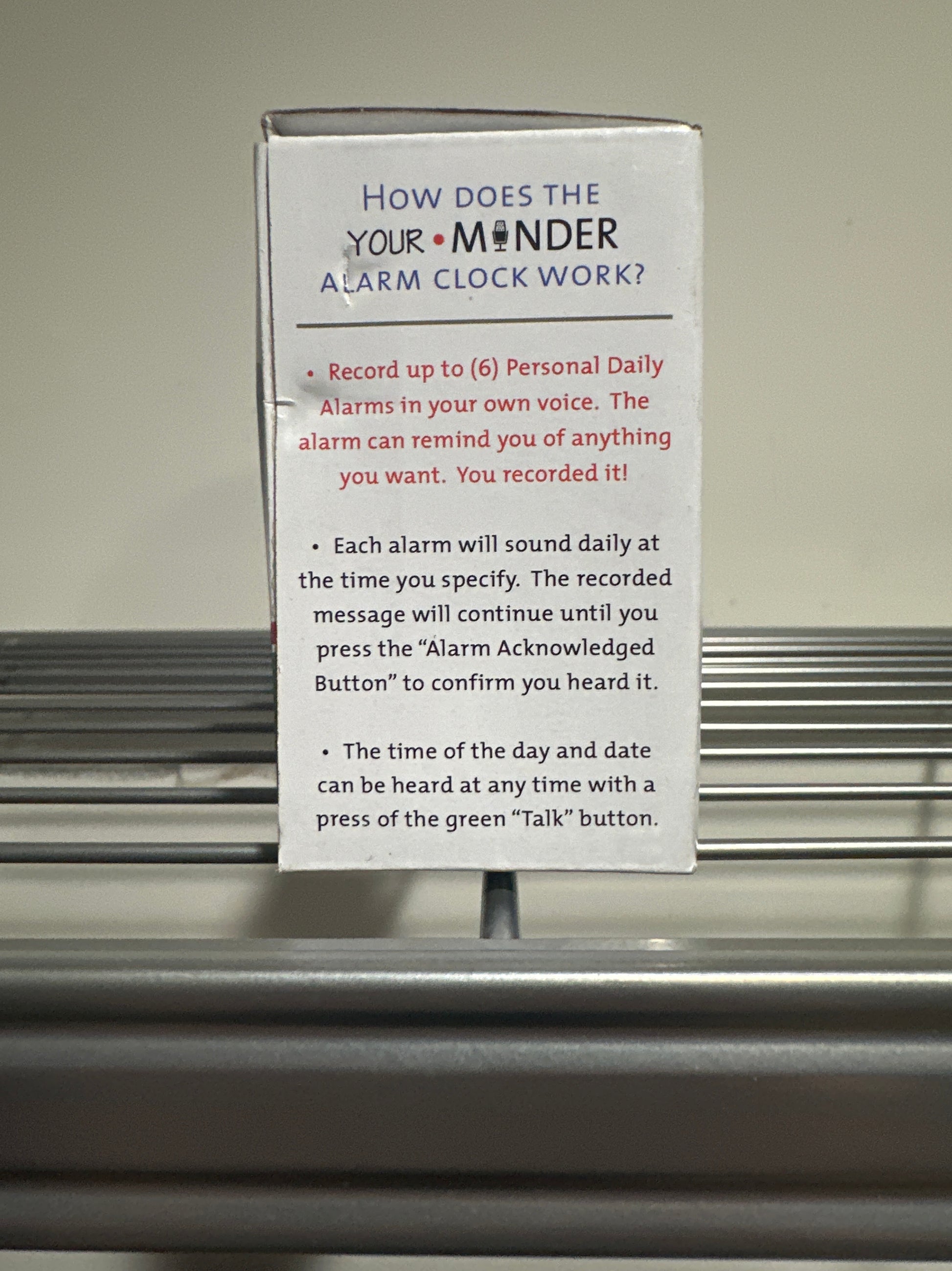 - Product: Your Minder Personal Recording Alarm Clock